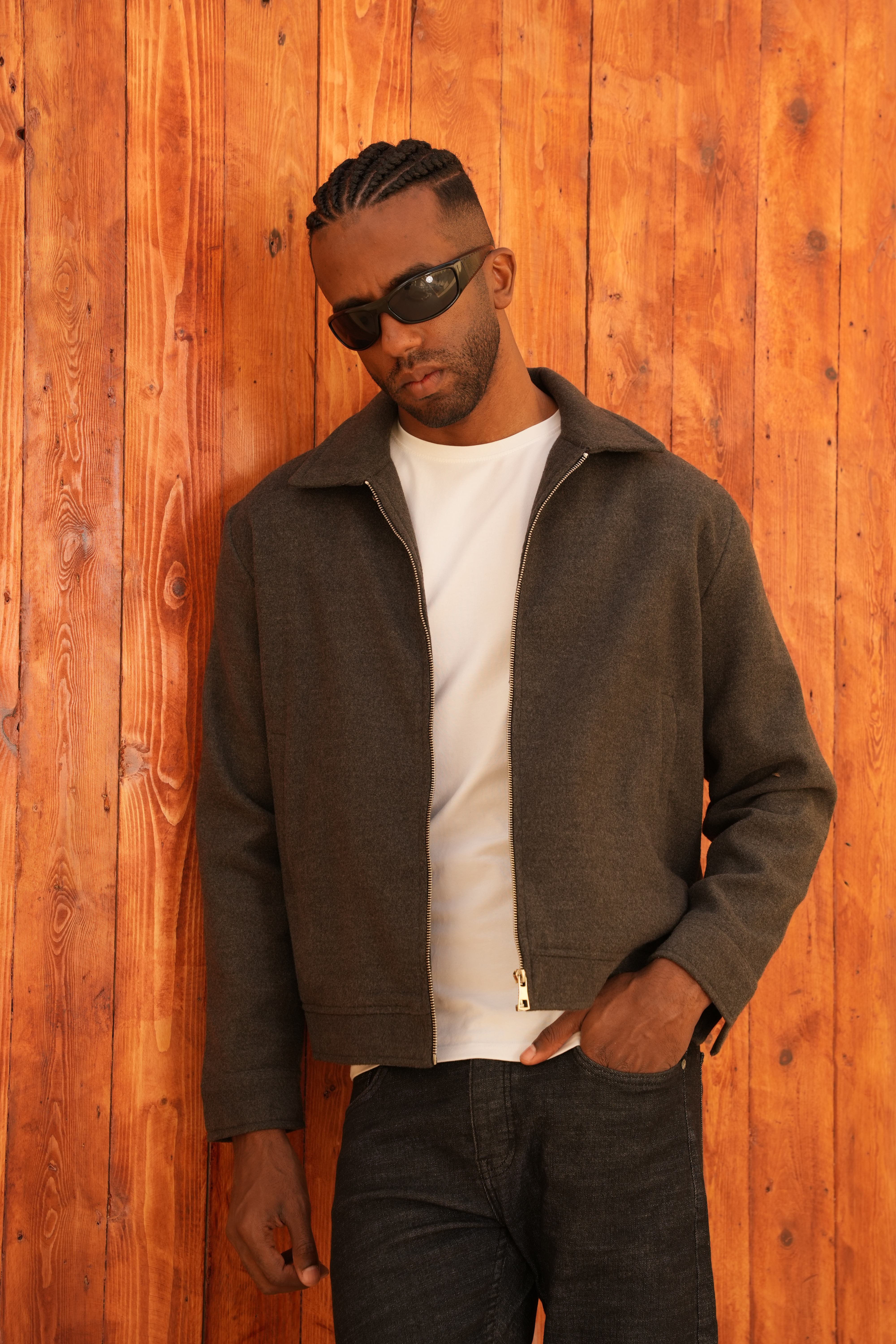 Zip-up Wool Jacket Charcoal