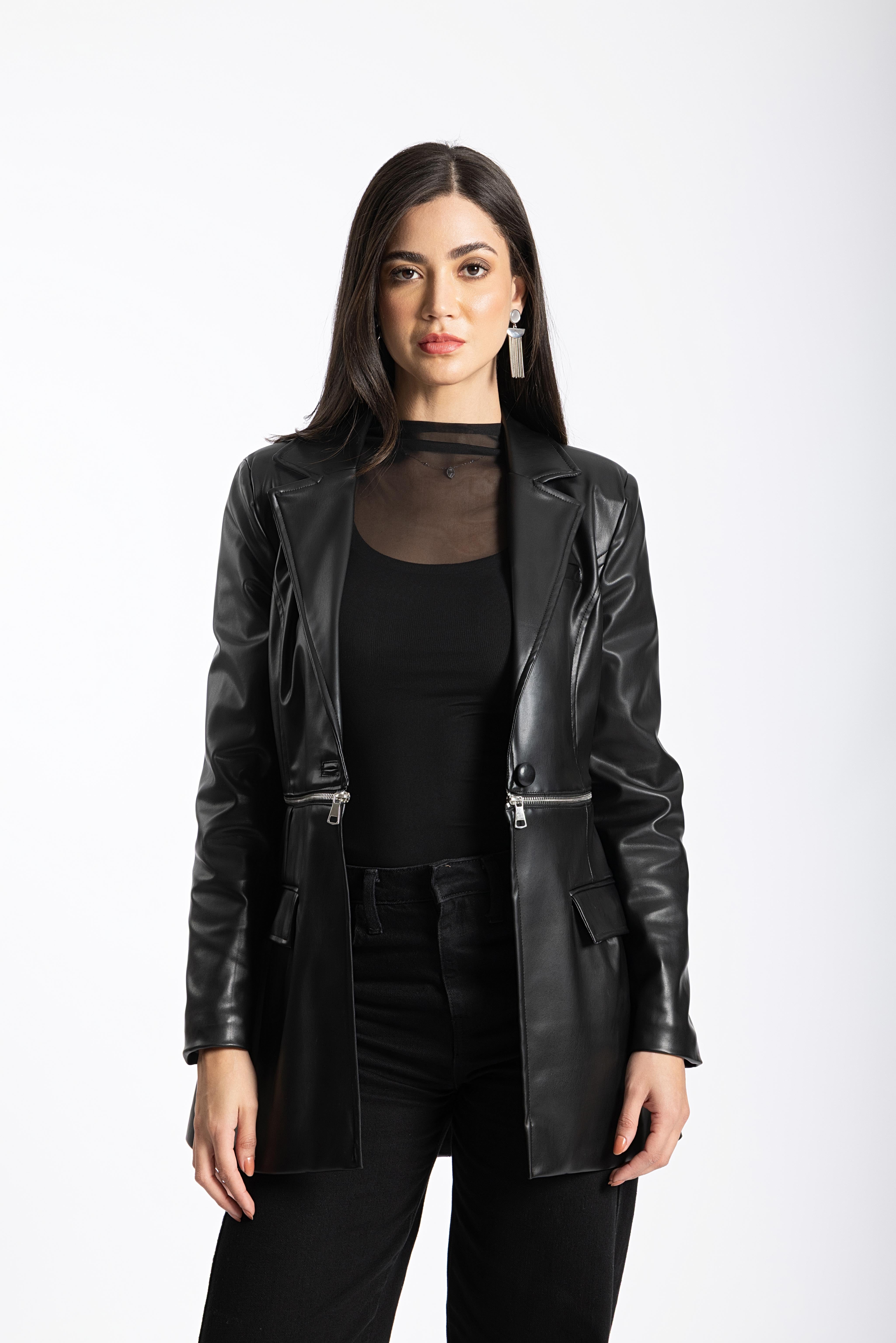 Cropped leather coat